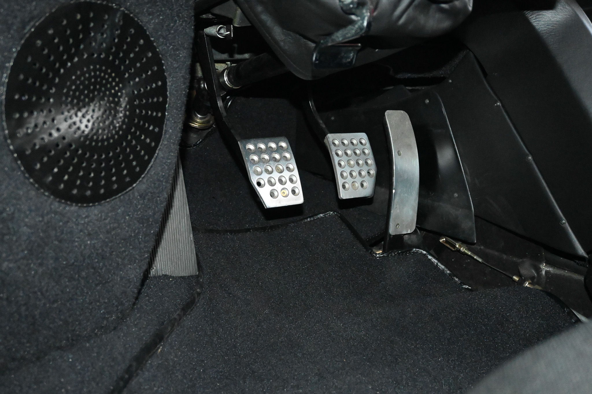 Behind the custom-finished F355 Challenge Magnesium Speedlines sits a set of original and extremely rare AP Racing brake calipers that provide a crazy bite compared to OEM configuration. Ride quality is stiff and responsive… courtesy of a full set of Aragosta coilovers and AP Racing bbk. New Yokohama A052 tires complete the overall setup and provide high confidence at all speeds.