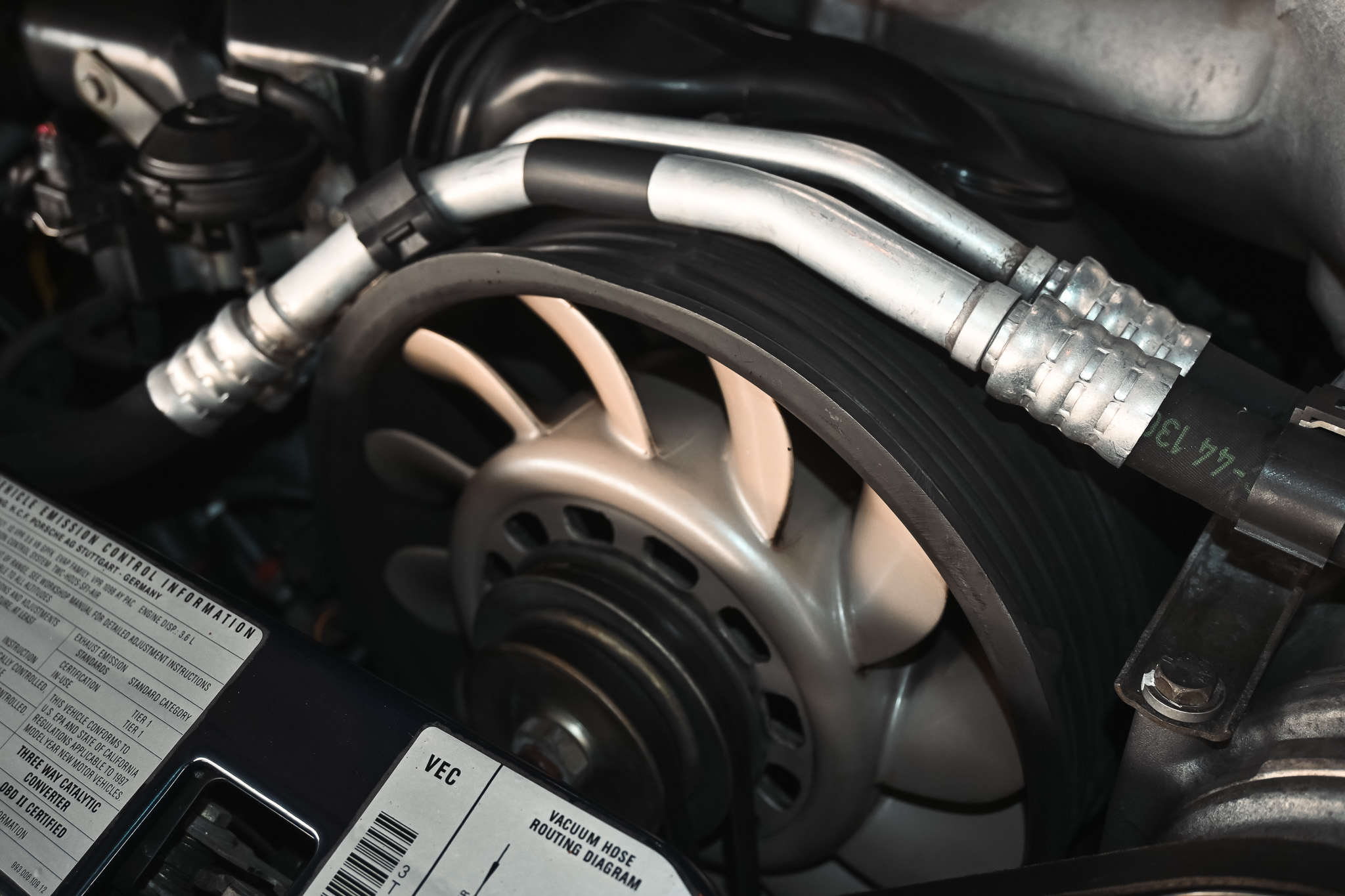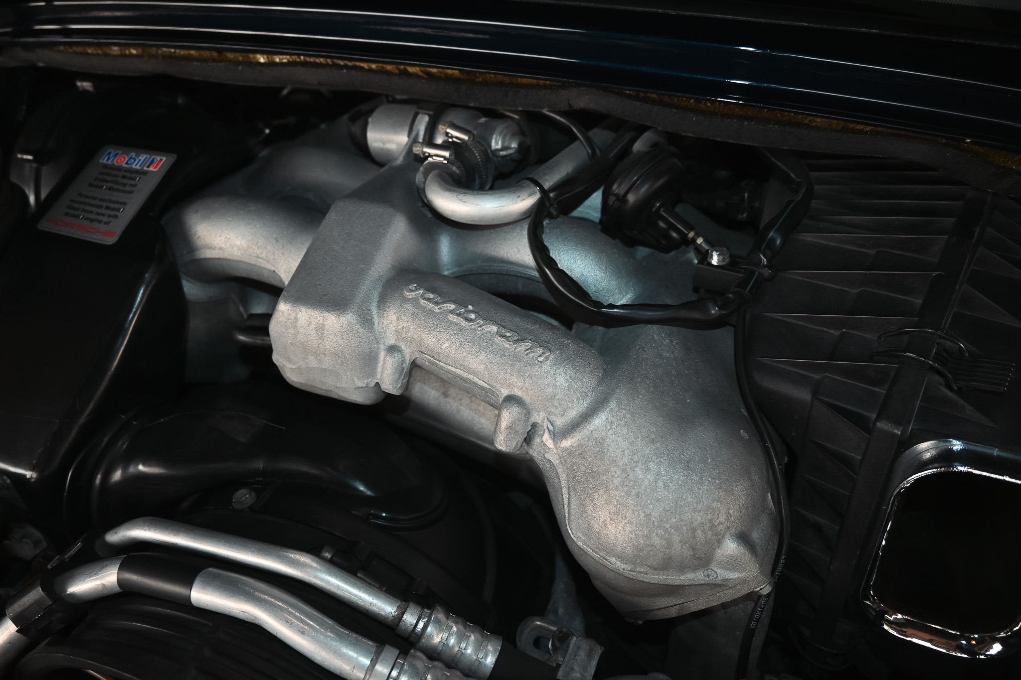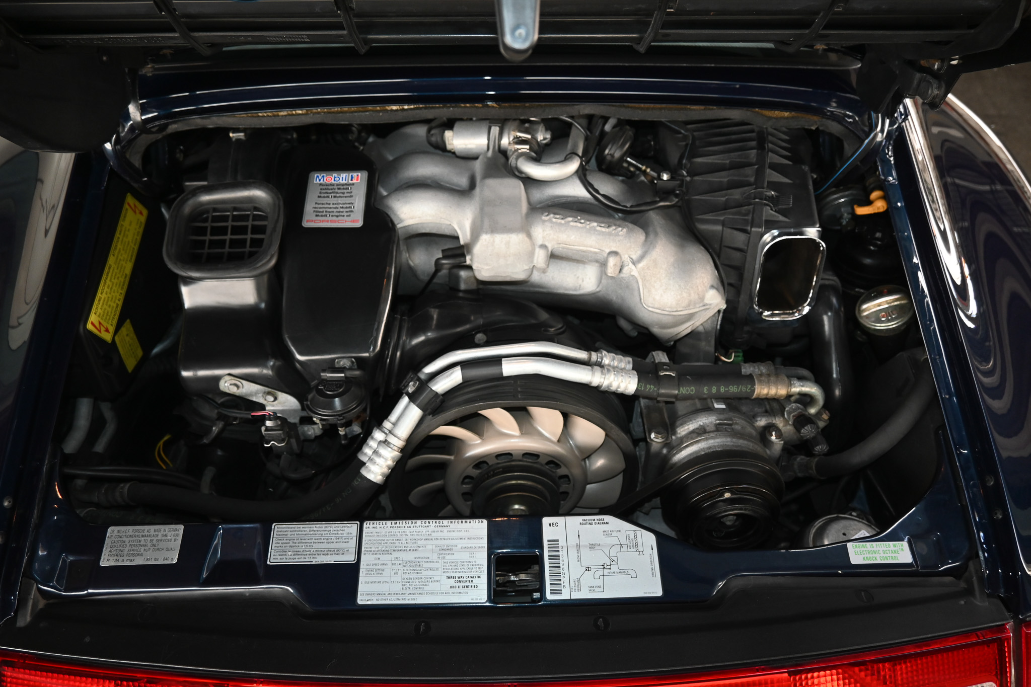 The mechanical condition is excellent. The factory exhaust provides smooth, quiet tone from the 3.6L flat six and the six speed transmission shifts effortlessly. There is no feeling of a worn clutch or worn shifter bushings nor are there any unusual powertrain noises or misfires. The factory suspension setup received a service only 3000 miles ago and feels crisp and responsive with no signs of worn bushings or struts. The engine bay present’s all original and in amazing shape. Underside is in amazing shape, pics available upon request.