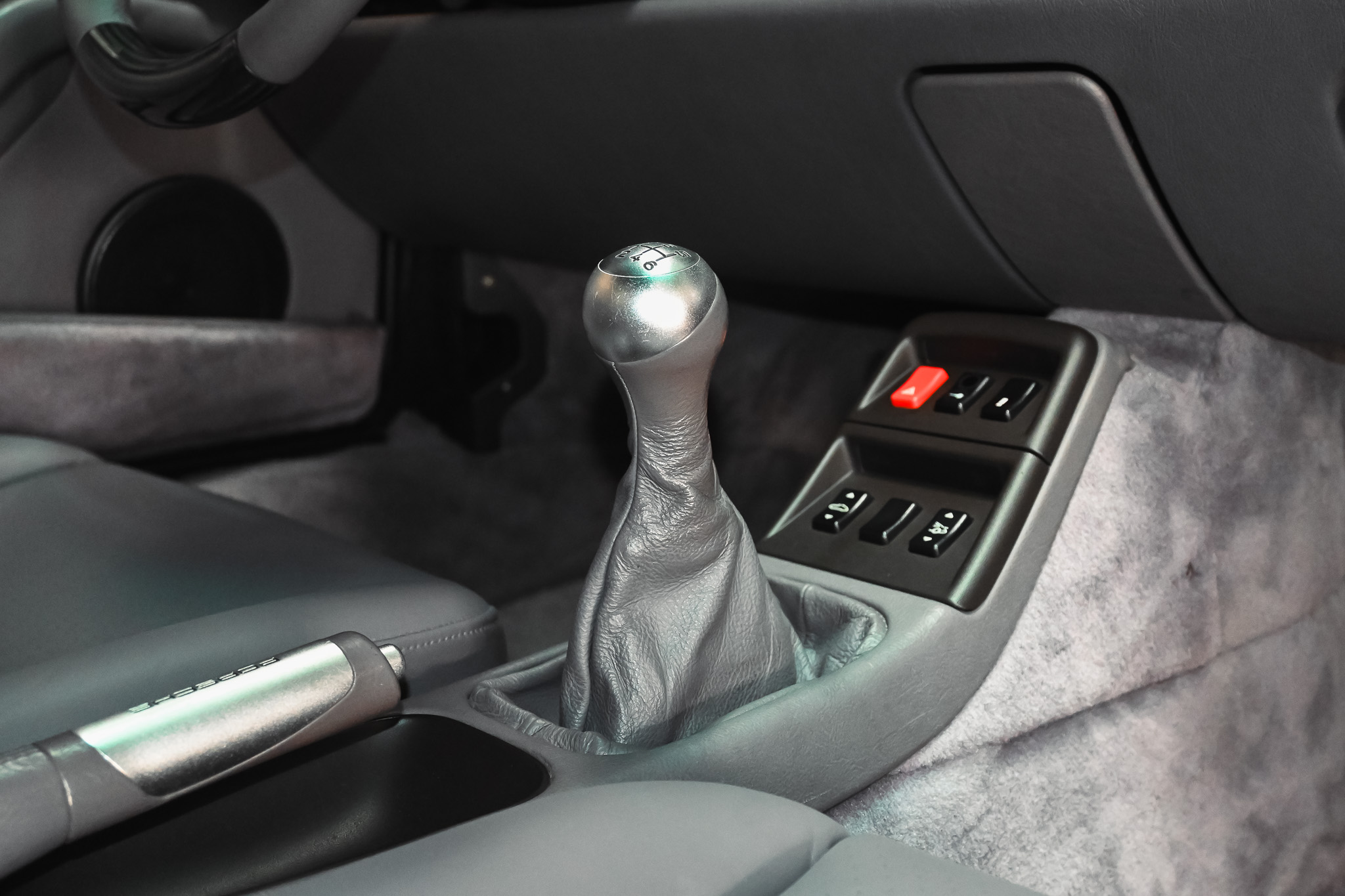- Aluminum/leather shifter and E-brake handle